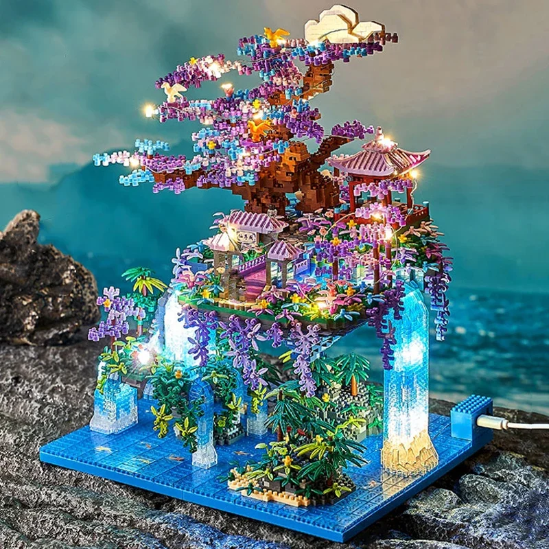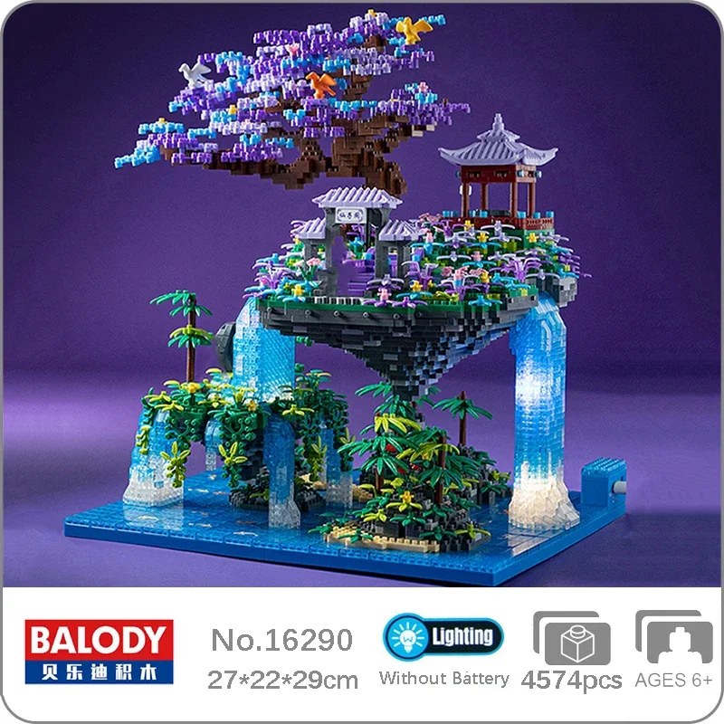 Balody 16290 World Architecture Pavilion Cloud Tree Island Waterfall Pool Light Mini Diamond Blocks