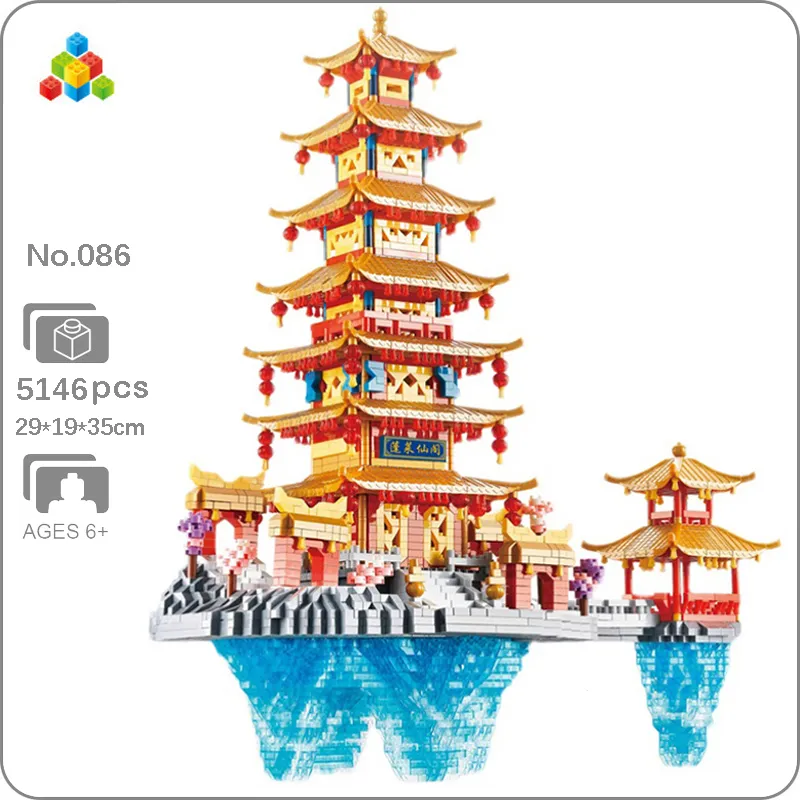 YZ 086 World Architecture Penglai Pavilion Tower Cloud Palace Mini Diamond Blocks No Box