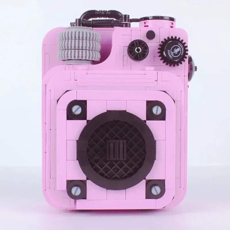 Lezi 00985 Portable Audio Retro Sound System Pink Music Player Machine Mini Blocks Bricks Building No Box